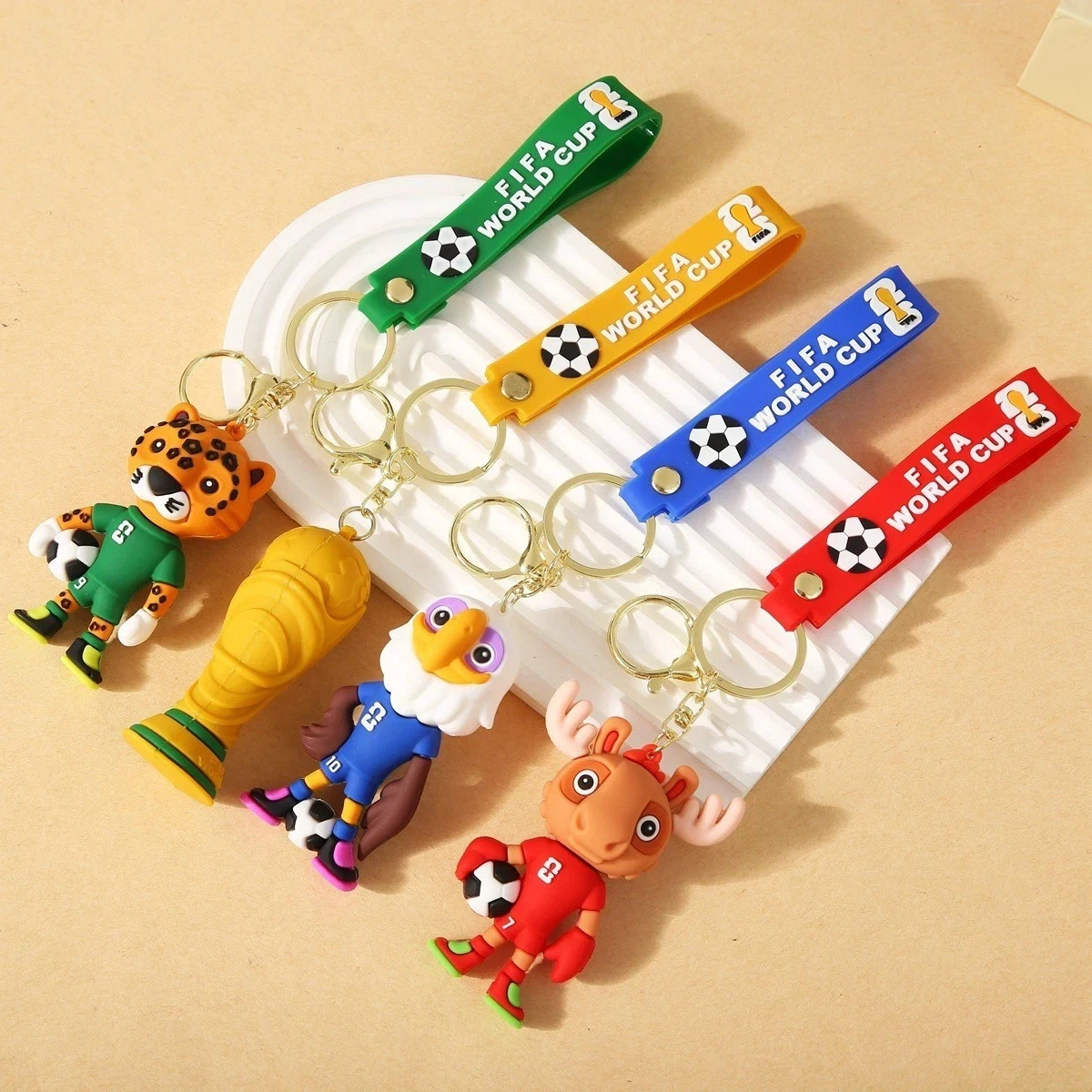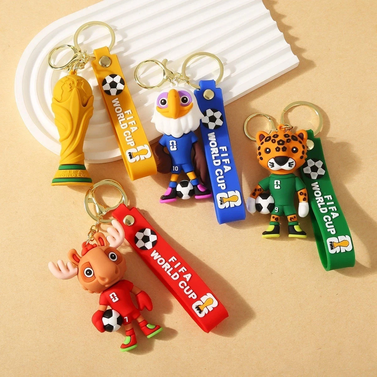 2026 World Cup Cartoon Mascot 4 Keychain Soccer Trophy Cute Animal Gift Fans