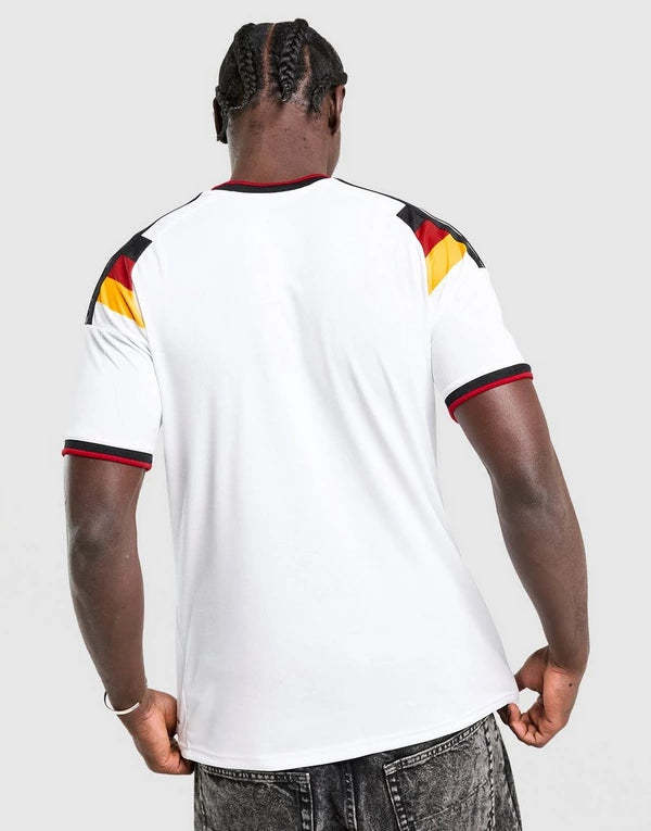 The adidas Germany 2026 Home Shirt combines modern design with classic German football heritage. Featuring a clean white base with bold details inspired by national pride, it offers lightweight comfort and moisture-wicking AEROREADY technology to keep you cool on and off the pitch. Designed for fans and players alike, this shirt embodies the spirit of Die Mannschaft on their road to glory.