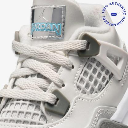 The Air Jordan 4 “Photon Dust ” is a grade school–exclusive colorway slated for Holiday 2025, carrying style, It features a muted Photon Dust grey leather upper accented with Blue Chill pops on eyelets, heel tab, and midsoles, blending soft tones with classic AJ4 silhouette elements.