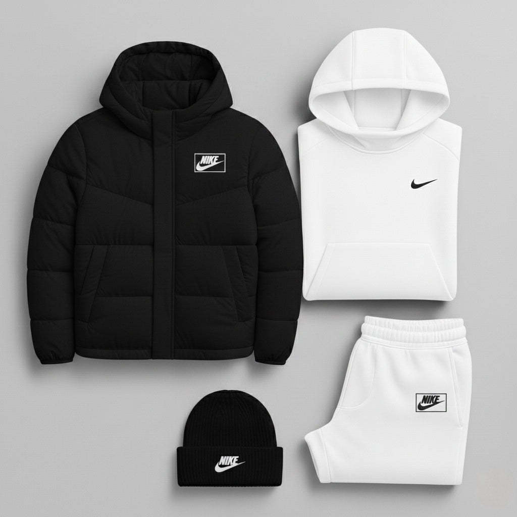 Un look essentiel et versatile, parfait pour la vie quotidienne, les loisirs ou pour un style streetwear minimaliste et soigné. L'harmonie des tons crée un contraste intemporel qui s'adapte à toutes les situations urbaines.